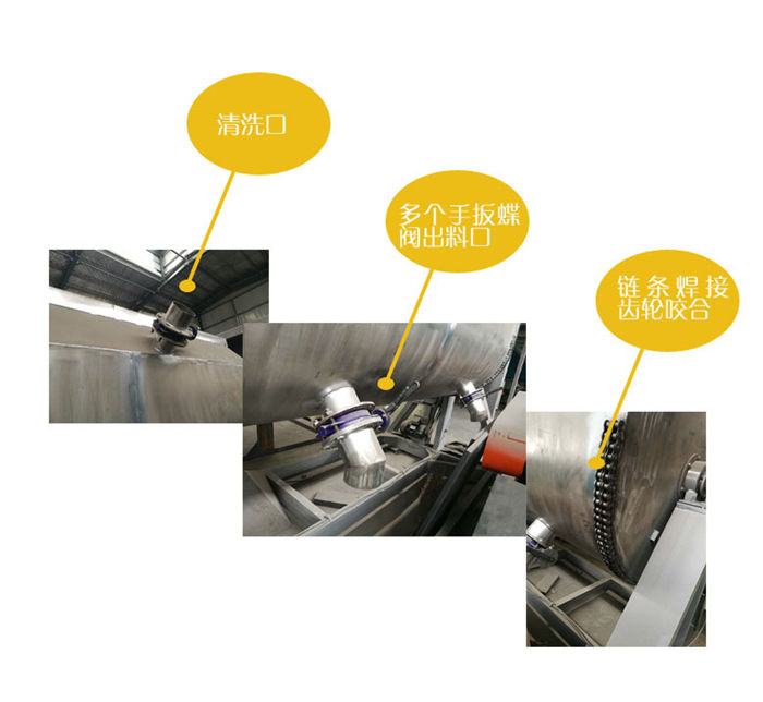 該設備為臥式U型結構,筒體采用碳鋼和不銹鋼(201/301) 材質,內外兩層螺帶交鍇布置,混合逮度快,均勻度高;軸承及攪拌葉片采用碳鋼/不銹鋼錳鋼鑄造材料,槳葉拋光,結實好用;設備的90度翻轉結構,操作時可將殘余物料卸出,清洗工作更方便,降低了勞動強度,提升了生產效率:各部位密封技術好,放料口采用防水蝶閥密封,減少了生產過程中的漏料滴水問題。整套生產線由真石漆攪拌機、控制柜、螺旋提升機(20噸以上設備建議采用斗式提升機)組成,可根據客戶需要,配置合理機型,批次產量最多可達到40T。