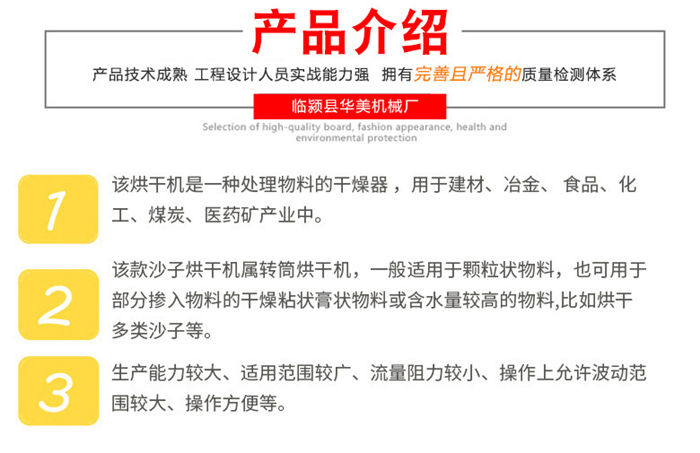 該烘干機(jī)工作原理:物料由供料裝置進(jìn)入回轉(zhuǎn)滾筒的內(nèi)層,實(shí)現(xiàn)順流烘干,物料在內(nèi)層的抄板下不斷抄起、散落呈螺旋行進(jìn)式實(shí)現(xiàn)熱交換,物料移動(dòng)至內(nèi)層的另一端進(jìn)入中層,進(jìn)行逆流烘干,物料在中層不斷地被反復(fù)揚(yáng)進(jìn),呈進(jìn)兩步退一步的行進(jìn)方式,物料在中層既吸收內(nèi)層滾筒散發(fā)的熱量,又吸收中層滾筒的熱量,同時(shí)又延長了干燥時(shí)間,物料在此達(dá)到干燥狀態(tài)。物料行至中層另一端而落入外層,物料在外層滾筒內(nèi)呈矩形多回路方式行進(jìn),達(dá)到干燥效果的物料在熱風(fēng)作用下行進(jìn)排出滾筒,沒有達(dá)到干燥效果的濕物料因自重而不能快速行進(jìn),物料在此矩形抄板內(nèi)進(jìn)行充分干燥,由此完成干燥目的。